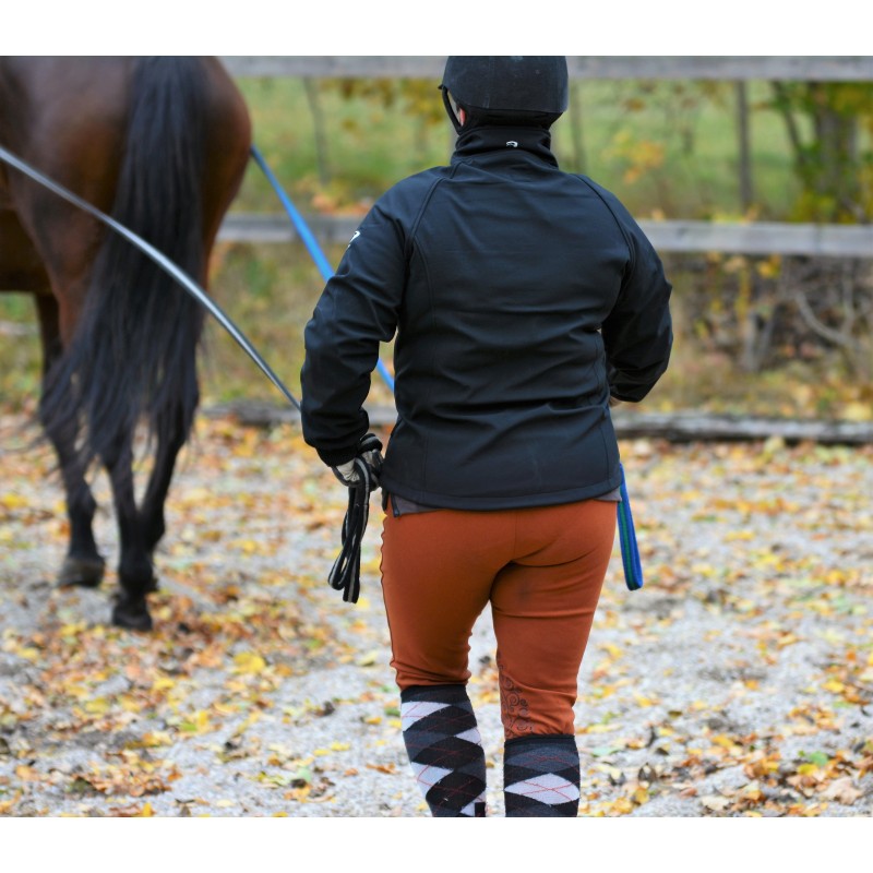 Snygg och praktisk Softshelljacka som passar perfekt under hösten och vårens ridturer. Eller varför inte under träningspassen i ridhus under vintern. Inte jättestor i storlek. Jackan på bilden är storlek XL och modellen har vanligtvis storlek 46 på jackor. Finns i storlekarna L-XXL