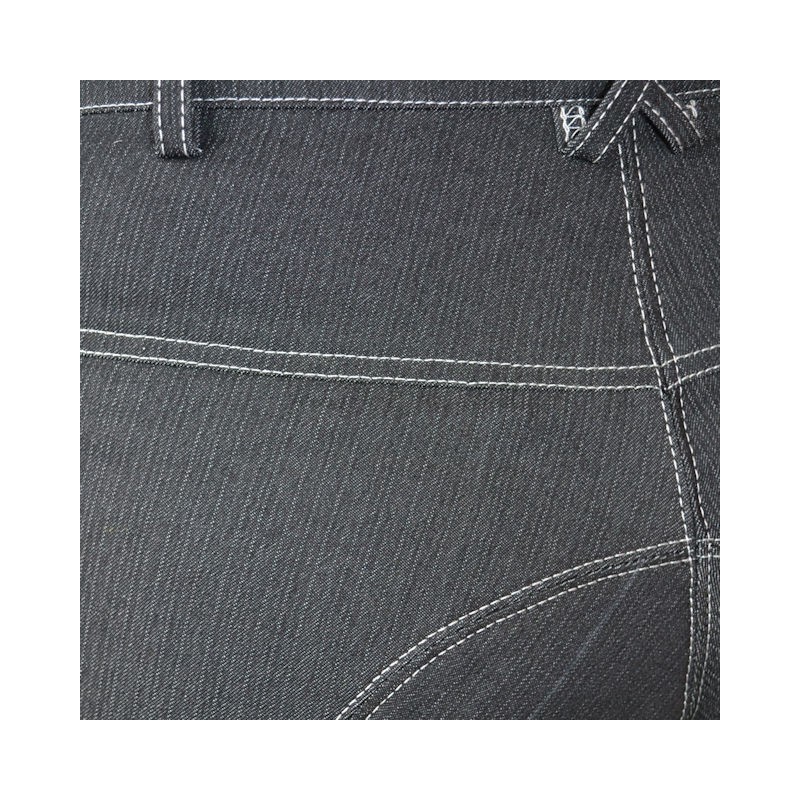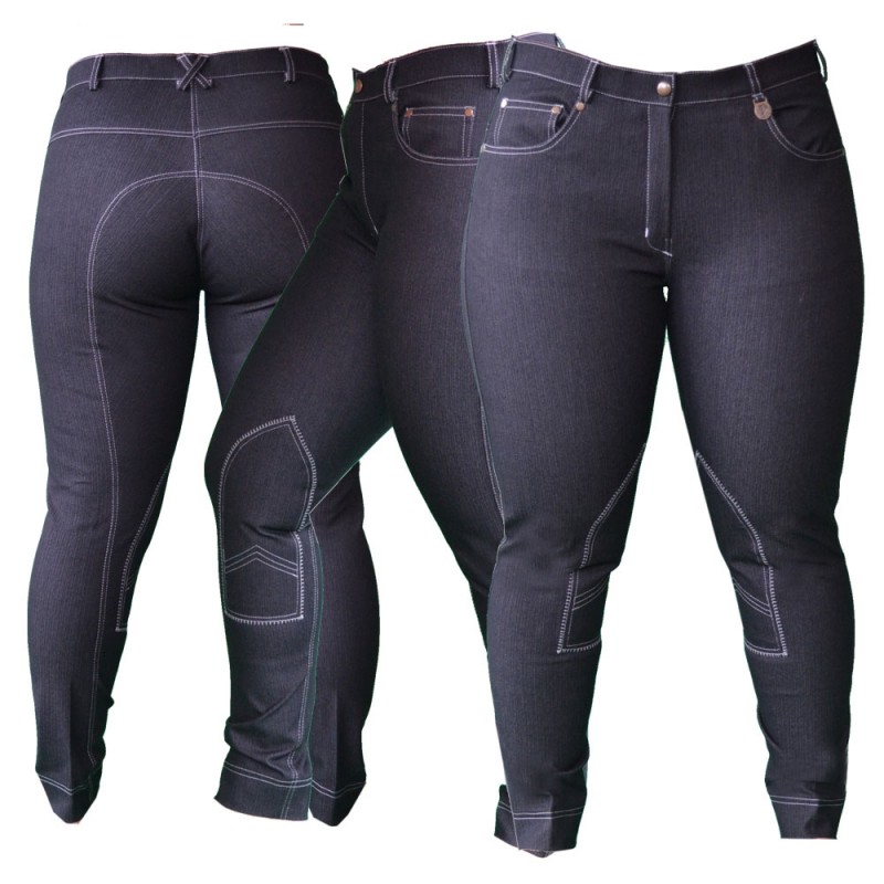 Utseende som ett par "vanliga" jeans med hällor och fickor men tyget är gjort i vävd bomull och Lycra vilket gör dem stretchiga. Designade för en kraftig rumpa och kraftiga lår utan att bli alltför stora i midjan. Går att beställa extra långa.